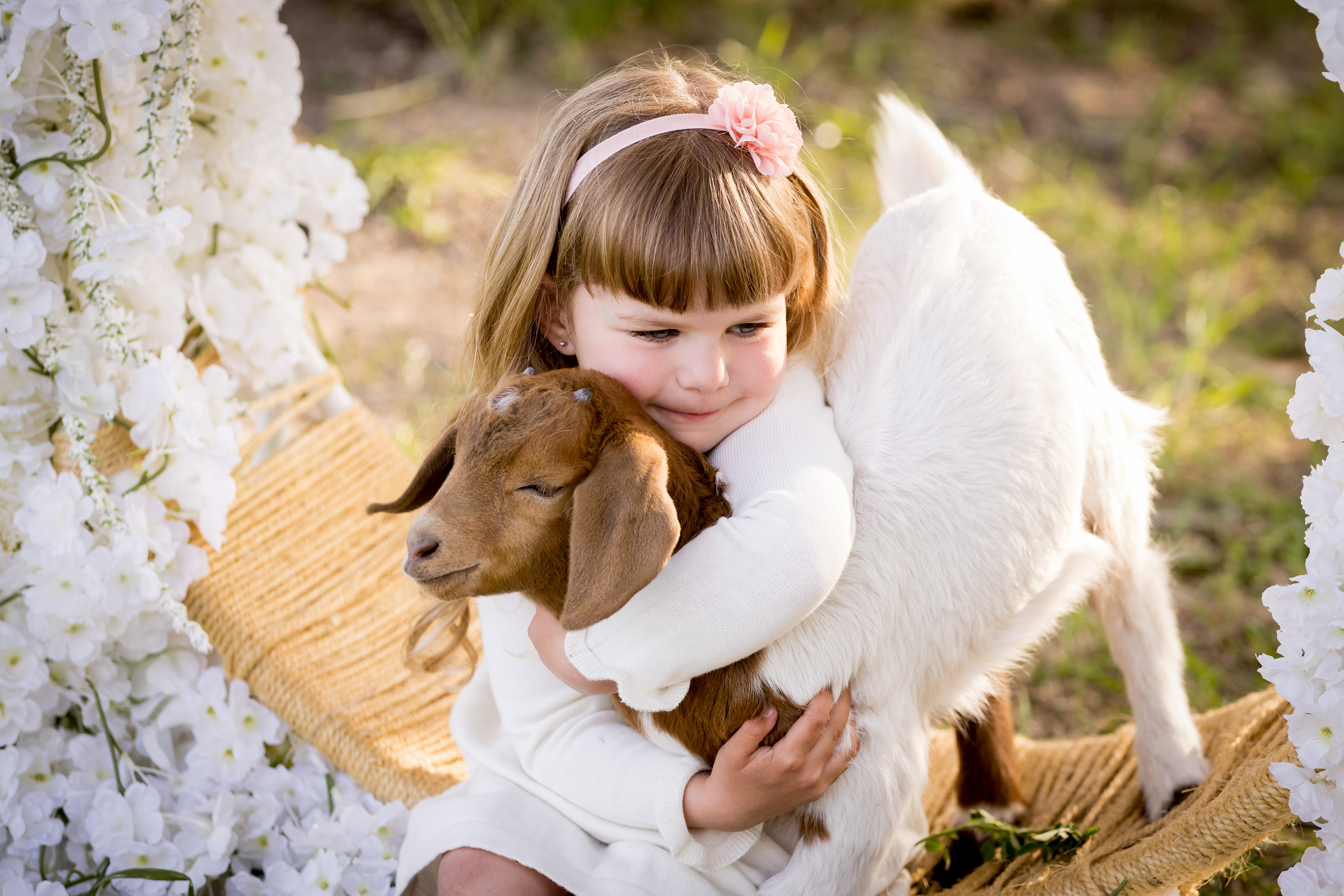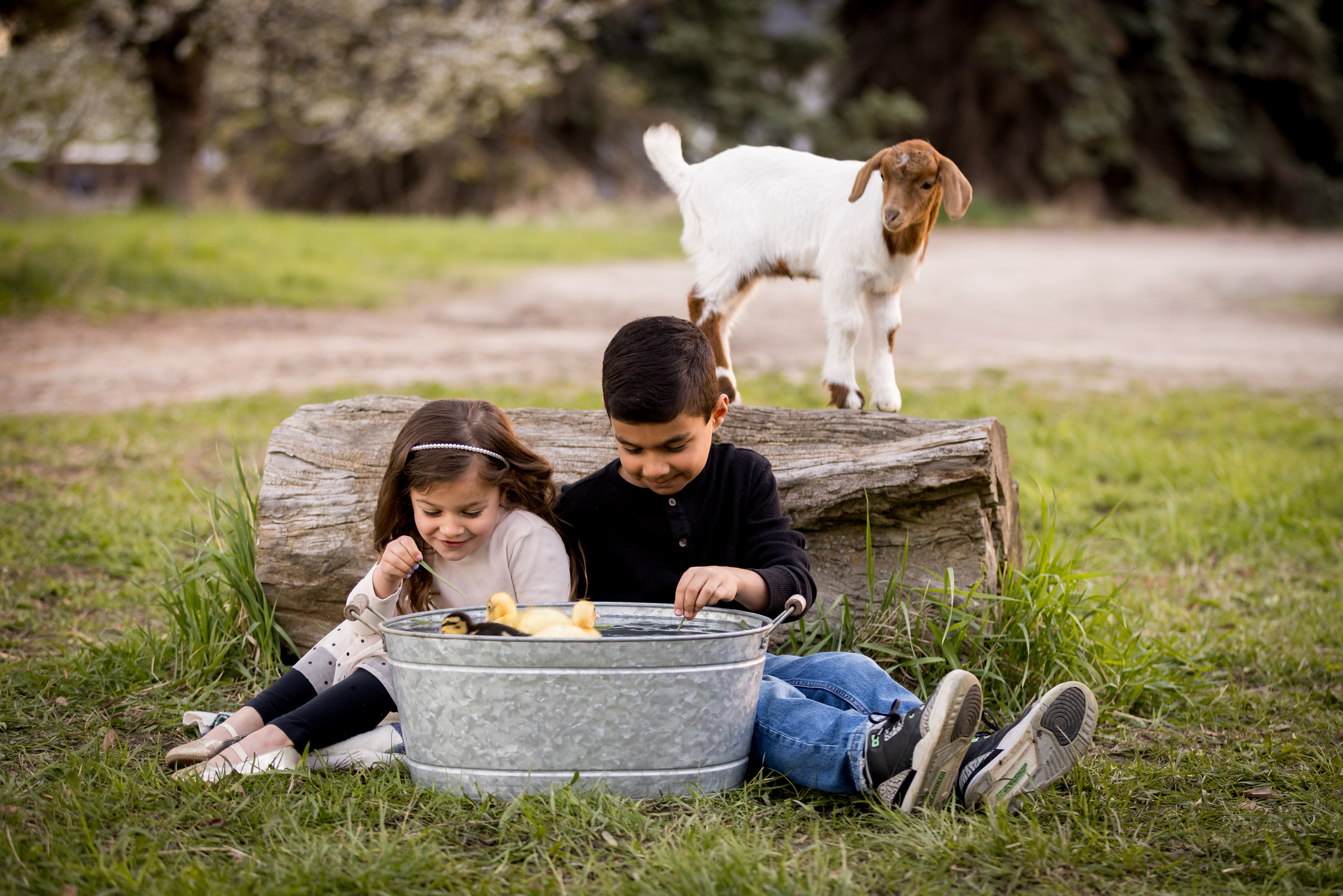 ANIMALS + PROPS - Our baby chicks and ducklings will hatch only days before our event begins, so it is important to prepare your children to be extra careful with these newly hatched babies. After only 2 weeks old, these sweet, fluffy cuties quickly turn into half-feathered, feisty “teenagers”, which is why we take advantage of their “baby” stage for photos. Nine years ago, we introduced Lucy, our lamb. While she is still here on our farm as our family pet, she is not quite as “cute” anymore, so we will be introduce a NEW baby animal every year! BUT, we keep it a surprise until the big reveal just before the event starts! Olive + Alice, our resident lop-eared bunnies! They were born Summer of 2023. We also have many fun farm props for our event. We’ll have a tree swing and tire swing, antique props, bubbles, and other props, for those who may not take to the animals.