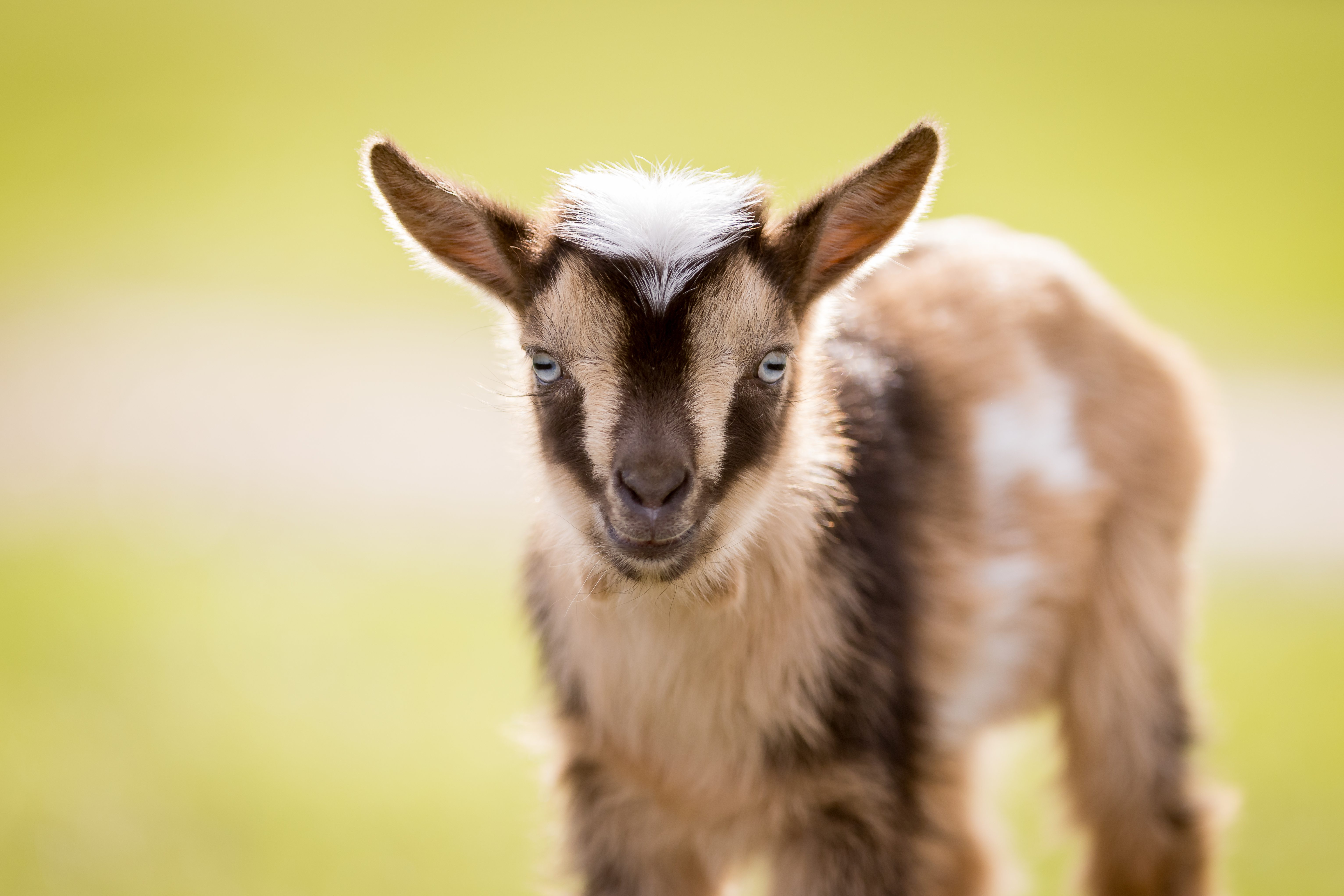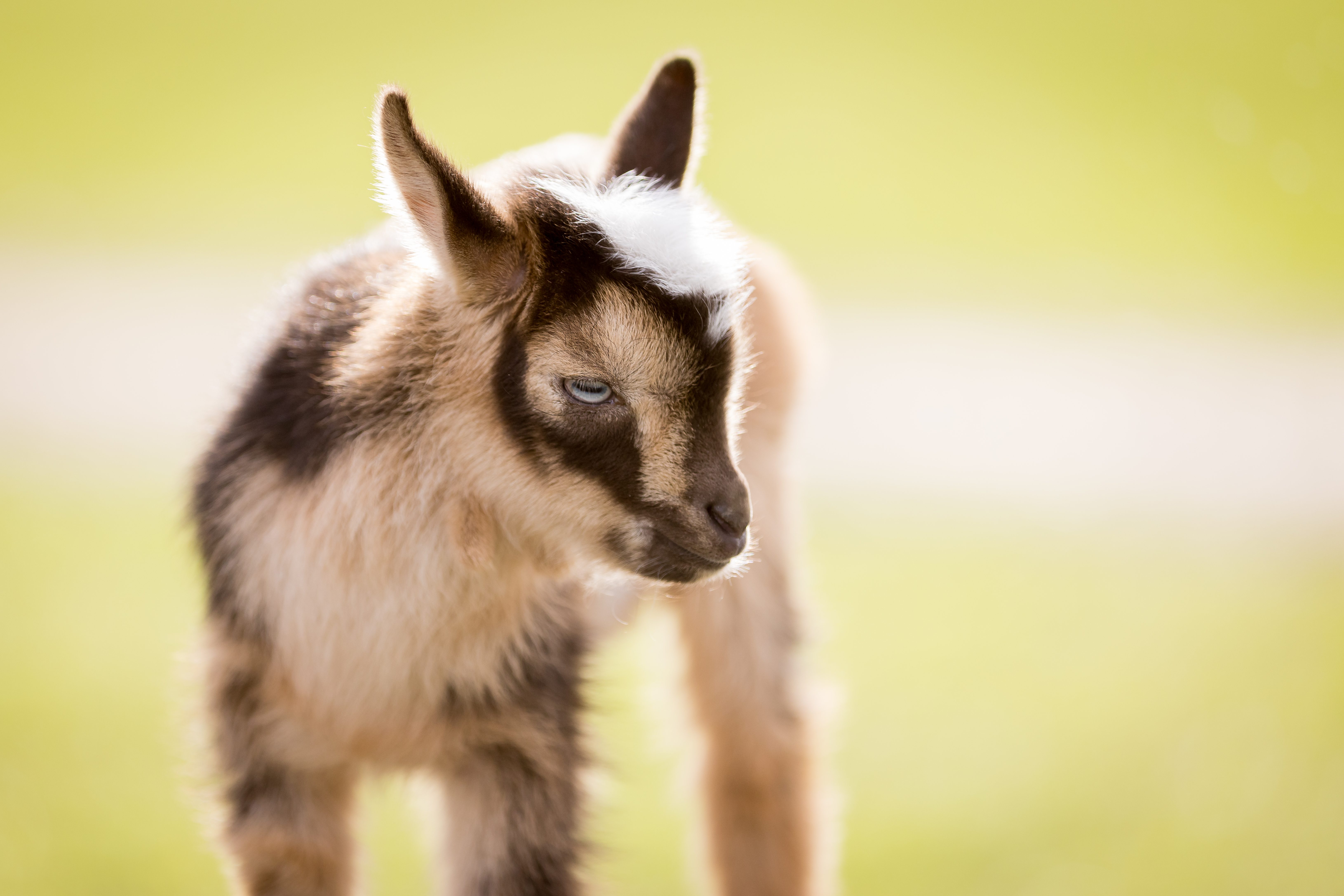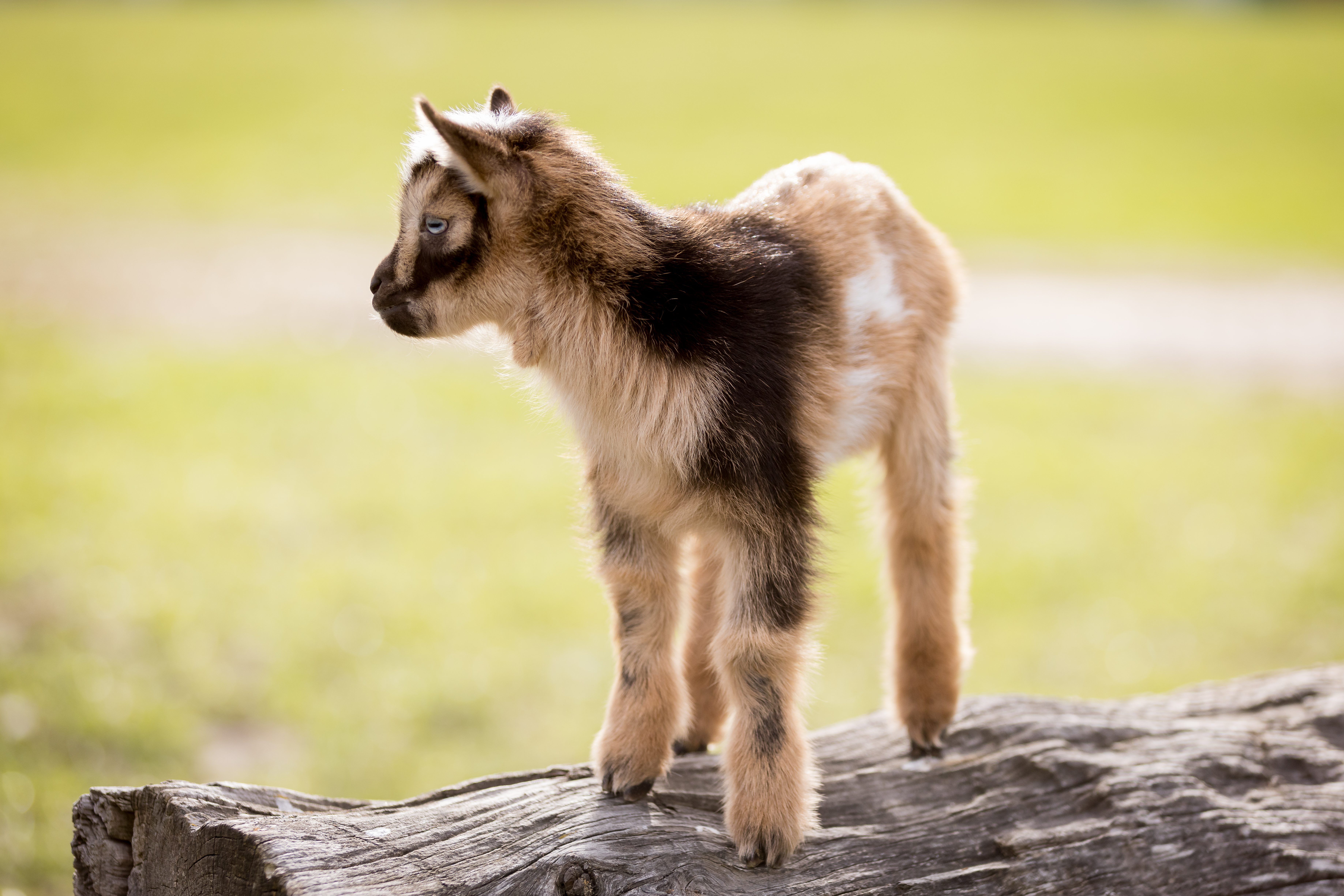 Franklin is a blue-eyed, tri-coloured, Nigerian Dwarf, baby boy, goat. He was born on March 24th, a triplet to a sweet Mama, who was just having trouble keeping up with feeding 3 babies, which made him a perfect candidate for a bottle baby, as he was the smallest of the three.